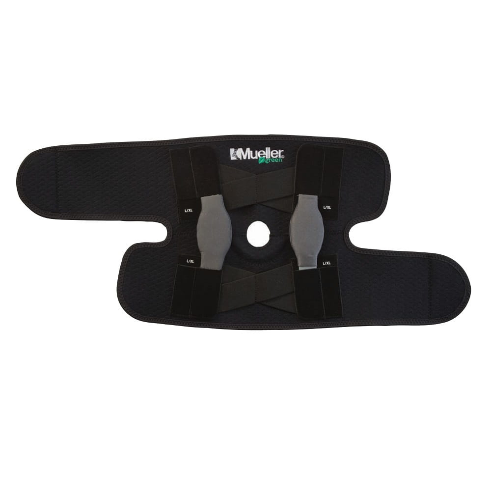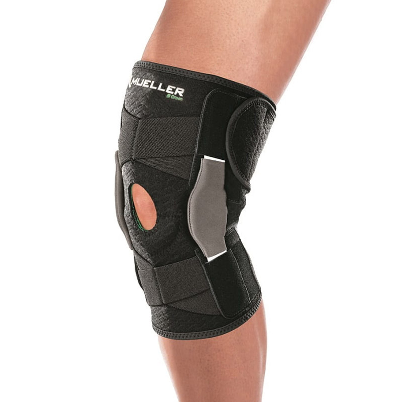 Produkty Mueller z serii Green są wykonane z materiałów nie zawierających pochodnych ropy naftowej. Idealny stabilizator dla słabych lub uszkodzonych kolan potrzebujących maksymalnego usztywnienia środkowego/bocznego i jednocześnie nie krepujący ruchów. "Owijana" konstrukcja pozwala na łatwe założenie i zdejmowanie, a otwarty tył zapobiega zwijaniu się stabilizatora pod kolanem. Wspomaganie rzepki kolanowej stabilizuje i podtrzymuje ją we właściwej pozycji. Regulowane pasy zapewniają indywidualne dopasowanie i kontrolowany ucisk. Oprawione krawędzie i gładkie szwy zapobiegają powstawaniu podrażnień i otarć.