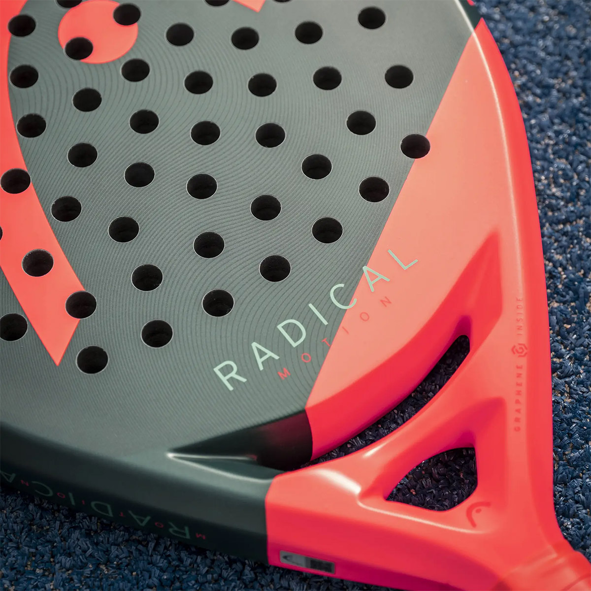Przejmij kontrolę dzięki łatwej w prowadzeniu rakiecie HEAD Radical Motion 2026 udoskonalonej poprzez zastosowanie najnowszych technologii. Jest lżejsza i łatwiejsza w manewrowaniu niż model Radical Pro 2026, dzięki czemu stanowi idealny wybór dla zaawansowanych padlistów o taktycznym stylu gry, którzy kontrolują rytm wymian. Główka w kształcie kropli wody zapewnia uniwersalność, a balans na rączkę podnosi komfort i ułatwia manewrowanie. Rakieta sprzyja grze defensywnej, jednocześnie zapewniając optymalną reaktywność w szybszych akcjach przy siatce.