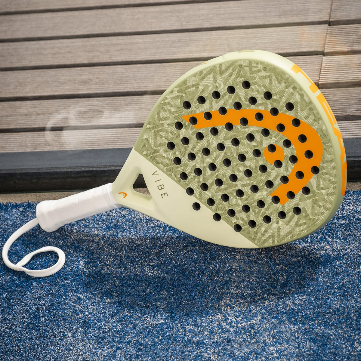 HEAD Vibe to uniwersalna rakieta o powiększonej główce w kształcie kropli wody. Oferuje moc bez wysiłku i miękkie uderzenie. Została stworzona dla rekreacyjnych padlistów, którzy zaczynają klubową rywalizację. Włókno szklane na powierzchni główki zapewnia komfortową miękkość, a większy sweet spot przekłada się na większą tolerancję i wybaczanie błędów. VIBE wyróżnia nowoczesne, efektowne wzornictwo z kolorowymi akcentami — dzięki tej rakiecie z pewnością wyróżnisz się na korcie.