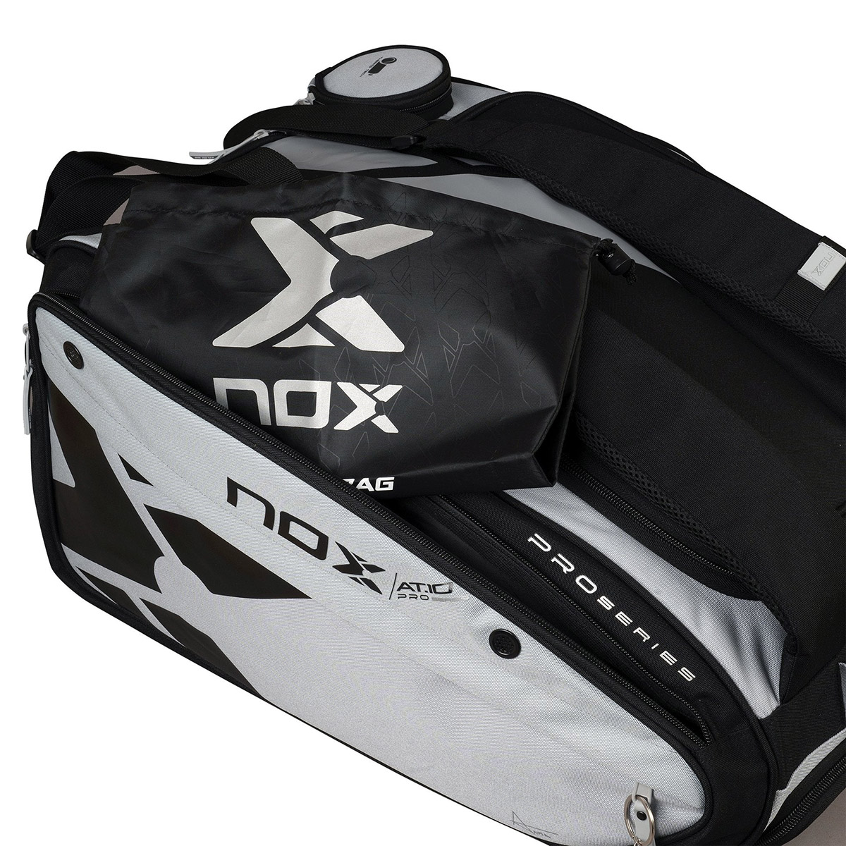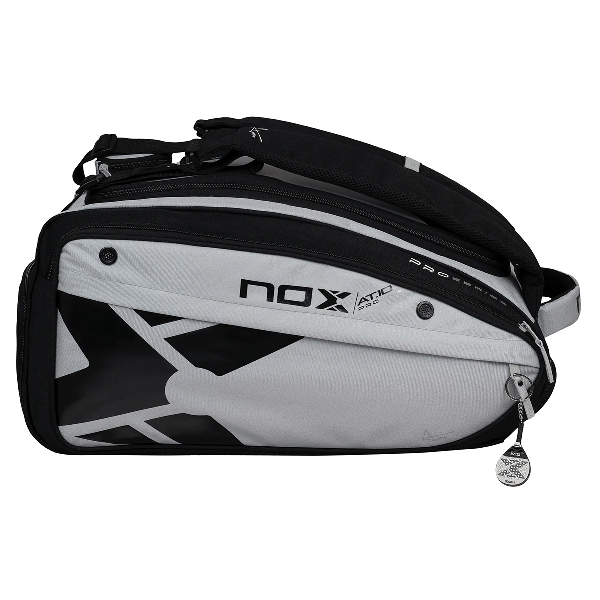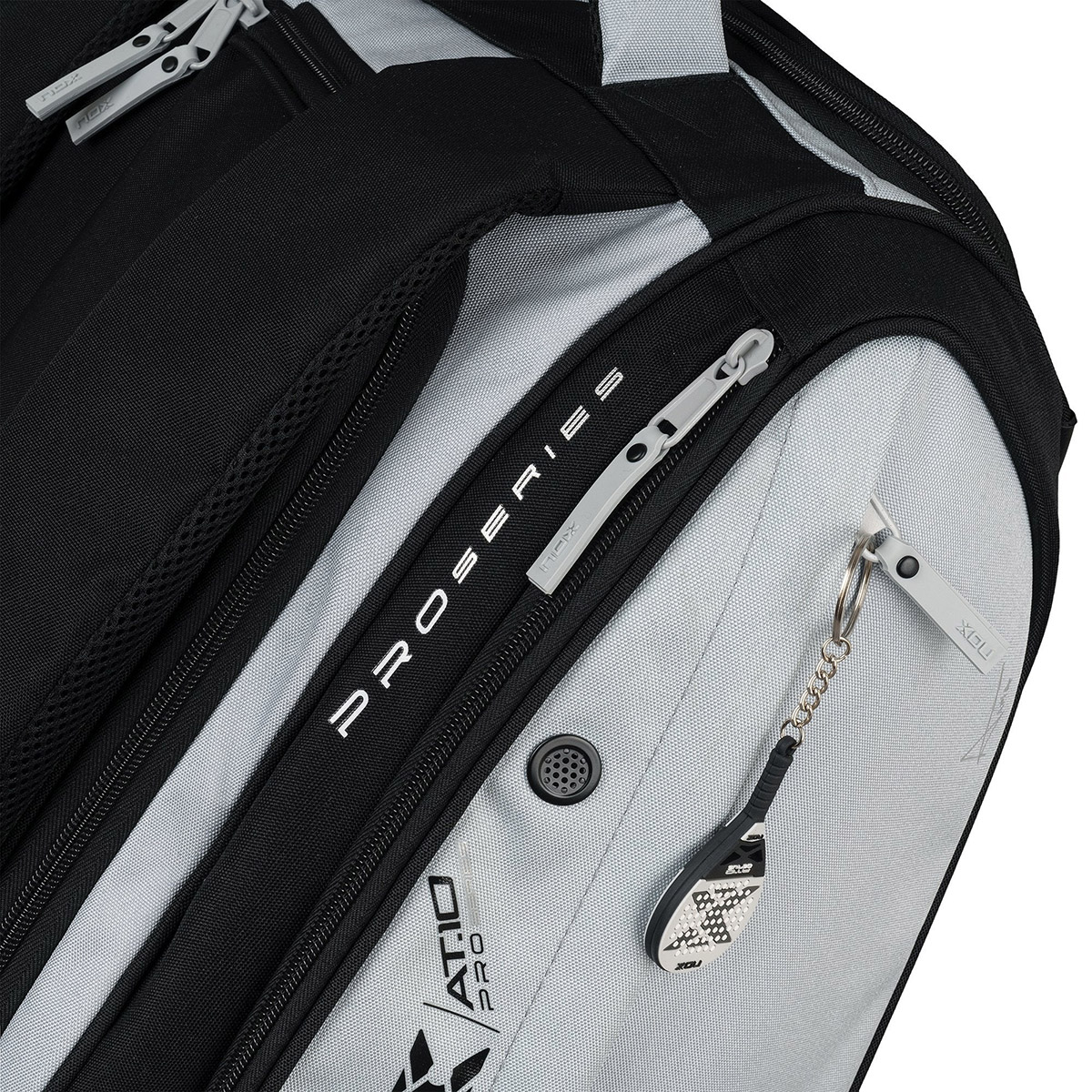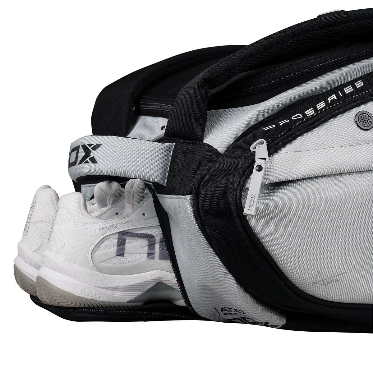 Przedstawiamy nową padlową torbę Competition XL Compact wykonaną z wysokiej jakości materiałów i posiadającą nowy design inspirowany kolorami najlepszej padlowej rakiety AT10 Luxury GENIUS 18K Alum - szarym i czarnym.